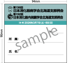 参加証はご自身で「実際のサイズ」で印刷し、名札(下記サンプルの赤線部分)を切り取り、例会当日ご持参ください。